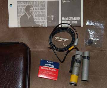 Here's a look at my latest eBay score… a CO90 complete kit. This one came with all paperwork, a battery (if you get one with a dead battery, please don't toss it in the trash for obvious reasons... save it for recycling), a single mic clip, a windscreen (easily broken and/or lost) and a second phantom power base... the only one I've seen.