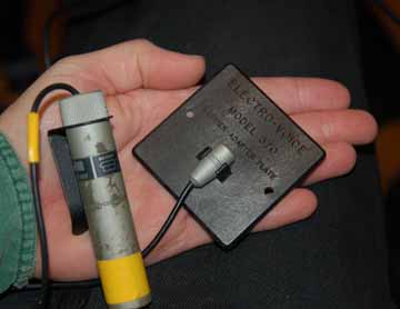 Another application for these mics that may be more useful is a plant mic, where the mic is hidden somewhere on the set. I’ve found a few EV model 370 Barrier Adapter Plates on eBay that just came in. These are simple glass-reinforced plastic plates, about 2-1/2 inches square, with a small recess and a clip to hold a CO90 head.